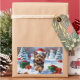 Pegatina Rectangular Yorkipoo en Nieve con Gorra Navidad