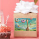 Girafa en la tierra de la leche y la miel con donuts cayendo del cielo