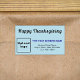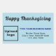 Pegatina de Acción de Gracias para saludar a sus clientes. Pegatina que puede usar como material de marketing para promocionar su negocio y promocionar su marca. Pegatina con el saludo de agradecimiento y con su nombre de negocio para crear conciencia de marca. También puede utilizarlo como etiqueta de producto esta temporada de acción de gracias. La forma pegatina es rectangular y el color azul claro. Los colores de las fuentes son azul oscuro y negro. Para personalizar de este pegatina, cargue el logotipo de su empresa, escriba el nombre de su empresa o empresa, la dirección y el número de teléfono y compruebe la apariencia. Si la apariencia le resulta agradable, puede realizar su pedido ahora. Si necesita cambiar el tamaño y mover el logotipo y los textos para que encajen en este pegatina o en otras formas y tamaños que elija, cambie la herramienta de diseño. También puede realizar otros cambios de acuerdo con sus preferencias en la herramienta de diseño, como cambiar el color pegatina, el color del tipo de letra y el estilo del tipo de letra. ¡Feliz Día de Acción de Gracias!