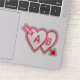 Pegatina Red Double Hearts with Cupids Arrow and Initials