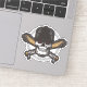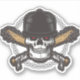 Este pegatina se jacta de un sorprendente cráneo pirata con ojos rojos penetrantes que exudan un aire de misterio y rebelión.
