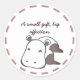PEGATINA REDONDA ナチュラルカラーのカバ動物イラスト|カスタムメッセージ入り
