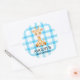 Perfect for baby's first birthday, this sticker features an adorable giraffe with a charming watercolor check background.