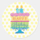 Feliz cumpleaños colorido pastel con pegatinas redondos de fondo de polka amarillo. Personalizado por 18 años. Usa estos pegatinas para poner los toques finales en todos tus deseos de cumpleaños. Selle sus invitaciones o sus sobres de agradecimiento. Utilícelo como etiqueta para las bolsas de tratamiento. Añadir a la chatarra páginas de libros y fotografías para acentos.