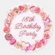 Pegatina Redonda Sobre de corazón con remolino de rosa para 18 cump