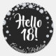 Pegatina Redonda 18 cumpleaños fiesta negro hola nombre de 18 diama