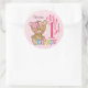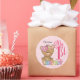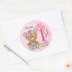 Pegatina Redonda 1.ᵉʳ Cumpleaños Teddy Bear Personalizado Rosa