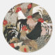 Pegatina Redonda 20. 群 鶏 図, 若 冲 rebaño de gallos, Jakuchu