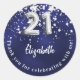 Pegatina Redonda 21 años estrellas de plata azul marino
