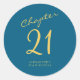 Pegatina Redonda 21st Birthday Party Gold Script Blue
