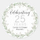 Pegatina de aniversario bonita - redonda con una delicada corona floral alrededor de las palabras "Celebrando 25 Años" y sus nombres. Puede actualizar el año y los nombres. ¡Utilice estas pegatinas en tarjetas, invitaciones, regalos y más!