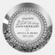 Pegatina Redonda 25° Aniversario Boda Ornamento Negro y Plata