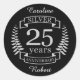 Un diseño para celebrar 25 años de matrimonio. Este diseño tiene un diseño de laurel de color plateado (gris) sobre un fondo negro. La plata es el regalo tradicional para esta ocasión. El texto dice el aniversario de Silver 25 años. Un diseño romántico para celebrar tu 25 aniversario de matrimonio. Si quieres ayuda para personalizar este diseño, por favor contacta conmigo, hay un botón de preguntar a este diseñador, justo debajo de este texto.