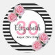 Pegatina Redonda 30 años rosas rosadas en franjas blancas negras