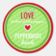 Diseño de Jill McAmis © 2013. Este pegatina casero de rayas rojas y verdes es perfecto para Navidades o Día de San Valentín. ¡Añade ese toque especial a tus golosinas caseras! ¡Horneado de amor!