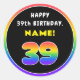Pegatina Redonda 39º cumpleaños: arcoiris colorido # 39, nombre per