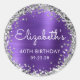 Pegatina Redonda 40.º Fiesta de cumpleaños Purpurina de Plata Púrpu