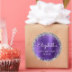 Estos pegatinas de 40 años de moda (o cualquier año) presentan un fondo metalizado morado cepillado con un borde purpurina de plata glam. Personalízalos con el nombre del invitado de honor en escritura a mano blanca, junto con su cumpleaños y fecha en letra sans serif.