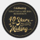 Personalizado, pegatinas de 40 años de boda, sellos para sobres o a favor de las etiquetas de celebración de la pareja especial e integración de su año boda como parte de los 40 AÑOS EN EL HACER diseño de tipografía retro en negro y oro. CAMBIO DE COLOR: el color de fondo negro se puede cambiar para coordinarlo con el tema de color fiesta. Póngase en contacto con el diseñador si desea modificar este diseño o en otro producto para complementar su conjunto de fiestas.
