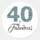 Pegatina Redonda 40 Fabuloso 40 cumpleaños Cebra turquesa negra