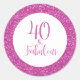 Pegatina Redonda 40 y fabuloso Purpurina Rosa de Cumpleaños