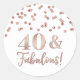 Pegatina Redonda 40 y fabuloso Rosa de oro de cumpleaños