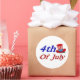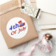 Celebrar el Día de la Independencia de Estados Unidos con pegatinas presentando el 4 de julio en texto azul y rojo 3D y el gorra del Tío Sam.