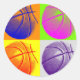 Pegatina Redonda 4 Colores Pop Art Basketball