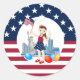 Pegatina Redonda 4 de julio Chica de cumpleaños con bandera de Esta