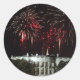 Pegatina Redonda 4 de julio fuegos artificiales sobre la Casa Blanc