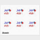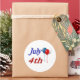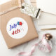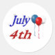 Celebrar el Día de la Independencia de Estados Unidos con pegatinas que presentaban el 4 de julio en texto azul y rojo 3D y globos rojos, blancos y azules.