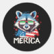 Pegatina Redonda 4 De Julio Merica Raccoon Arotic Sungantebandera