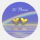 Pegatinas para su aniversario con mi diseño original de dos corazones dorados flotando en el agua bajo un arcoíris con texto personalizable que dice "50 Años".