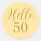 Elegante diseño pegatina de 50 años dorado. Este diseño moderno de tipografía está en la tendencia oro y amarillo / leche batida. Tiene el texto "Hola 50" en tipografía de tendencia. Este elegante diseño es perfecto para una inolvidable fiesta de cumpleaños número 50. Si necesitas ayuda con la personalización, o para un diseño personalizado, ponte en contacto conmigo a través de zazzle chat.