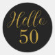 Elegante diseño pegatina negro y dorado de 50 años. Este diseño moderno de tipografía está en moda negro y oro. Tiene el texto "Hola 50" en tipografía de tendencia. Este elegante diseño es perfecto para una inolvidable fiesta de cumpleaños número 50. Si necesita ayuda para la personalización o para un diseño personalizado, póngase en contacto conmigo a través de zazzle chat o correo electrónico: ursuladawnmoon@gmail.com
