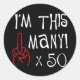 Pegatina Redonda 50.º cumpleaños Saludo al Dedo Medio