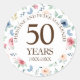 Pegatina Redonda 50° Aniversario de los Rosas de Rubor Bodas de Oro