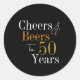 Pegatina Redonda 50 Cumpleaños Brindis Cervezas Fiesta Oro Negro