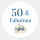 Pegatina Redonda 50 y fabuloso azul de cumpleaños