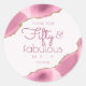 Cincuenta y fabulosos pegatinas de la ágata rosada de cumpleaños número 50 "Gracias". Presenta una textura rosa agate geode slice con acentos falsos purpurinas de oro. Los textos son una combinación de colores rosa claro y oscuro. Se puede personalizar o cambiar mediante el menú de edición.