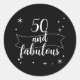 Pegatina Redonda 50 y fabuloso cumpleaños en blanco y negro