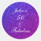 Pegatina Redonda 50 Y Fabuloso Purpurina Púrpura Rosa De Cumpleaños