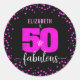 50 y fabuloso. ¡Apiérdelo y marque 50 con estilo! Envíe este impresionante, moderno, gráfico glam, caliente Relieve metalizado falso rosa "50" y puntos sobre un fondo negro, pegatina redonda personalizada de 50 años ayudará a hacer de su cumpleaños un fiesta a recordar. También están disponibles invitaciones de correspondencia y coordinación, sobres, etiquetas, servilletas de papel, placas de papel, tazas y otros artículos. ¡Es un gran añadido a las fiestas! Simplemente teclee el nombre del chica de cumpleaños y puede personalizar fácilmente este pegatina. Por favor, envíame cualquier pregunta o petición.