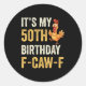Pegatina Redonda 50th Birthday Funny F-caw-f Chicken Rooster Crow F