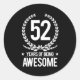Pegatina Redonda 52.º Cumpleaños (52 Años De Ser Increíble)