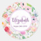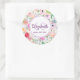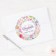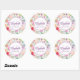 Un elegante pegatina atemporal con temática de verano y jardín en un romántico estilo bohemio, bohemia, para los 60 años, con pastas suaves y flores de color acuático en hojas rosa y melocotón y verde. Un fondo blanco claro. Plantilla para nombre, edad y fecha. El nombre está escrito en morado con una escritura de estilo con letras a mano. Pida favores de fiesta o como un recordatorio de fecha para sus invitados.