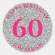Pegatina Redonda 60.º cumpleaños con nombre Purpurina Plata