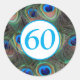 Pegatina Redonda 60.º natalicio de las plumas de pavo real