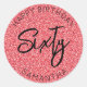 Pegatina Redonda 60.º Purpurina Rojo de cumpleaños sesenta