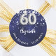 Un pegatina para una fiesta de cumpleaños número 60. Un color de fondo azul marino con estrellas falsas de plata. El color azul es desigual. Añade tu nombre, texto.